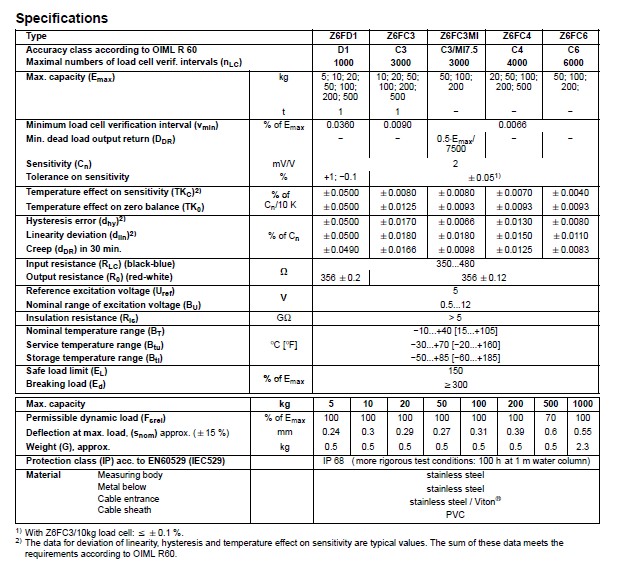 有多種不同的型號(Z6FD1, Z6FD1, Z6FD1MI, Z6FC4, Z6FC6) 并有不同的精度等級