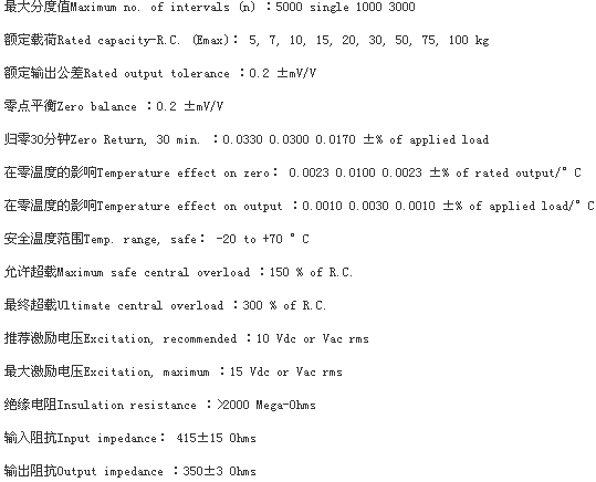 美國威世特迪亞vishay tedea 1040-1kg稱重傳感器技術(shù)指標(biāo):