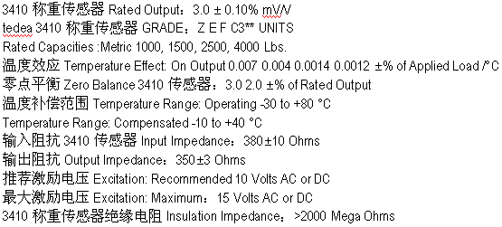 美國威世特迪亞vishay tedea 3410-2500lbs稱重傳感器參數(shù):