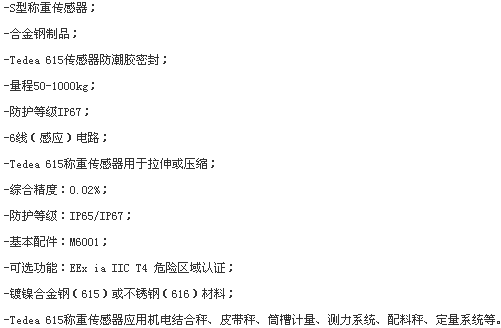 美國威世特迪亞vishay tedea 615-750kg稱重傳感器參數(shù):