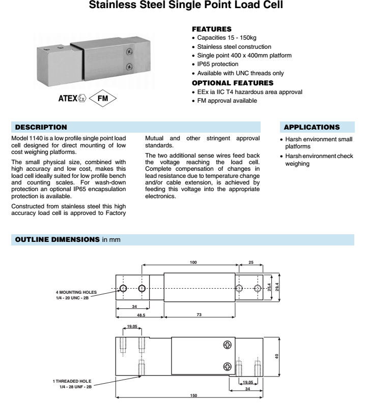 【廣州蘭瑟】美國特迪亞Tedea 1140-75kg稱重傳感器,年底走量,原裝正品,特價(jià)清倉,歡迎廣大新老客戶快來選購。!