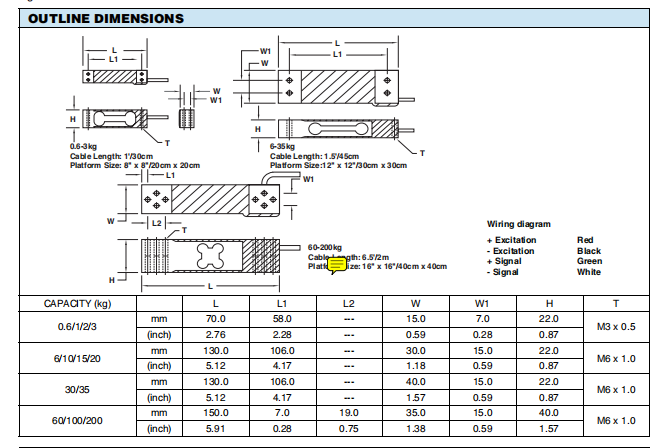 (1) Capacities 3-30kg