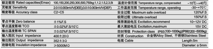 DEE稱重傳感器主要技術(shù)參數(shù):