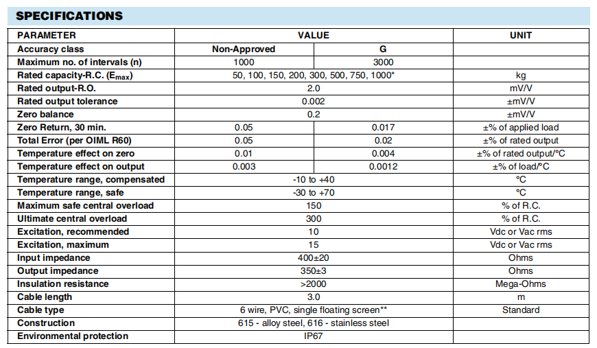 稱重傳感器技術參數