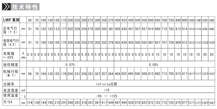 佳重復(fù)度是士0.013mm,而線性準(zhǔn)確度是士0.05%,無(wú)斷解像度,固定支架可在鋁槽內(nèi)任何位置作快捷及牢固的安裝。LWF拉
