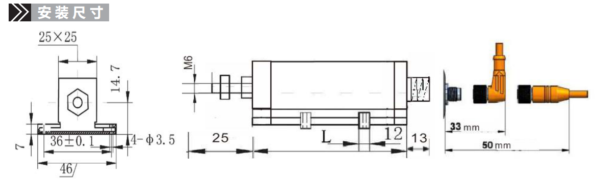 德國VOLFA KDW-25-A1直線位移傳感器安裝尺寸:
