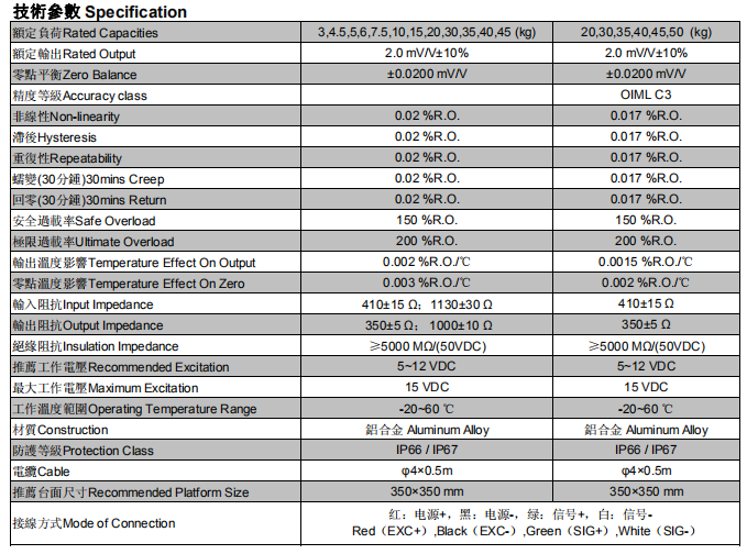 輸入靈敏度:1-2mV/V