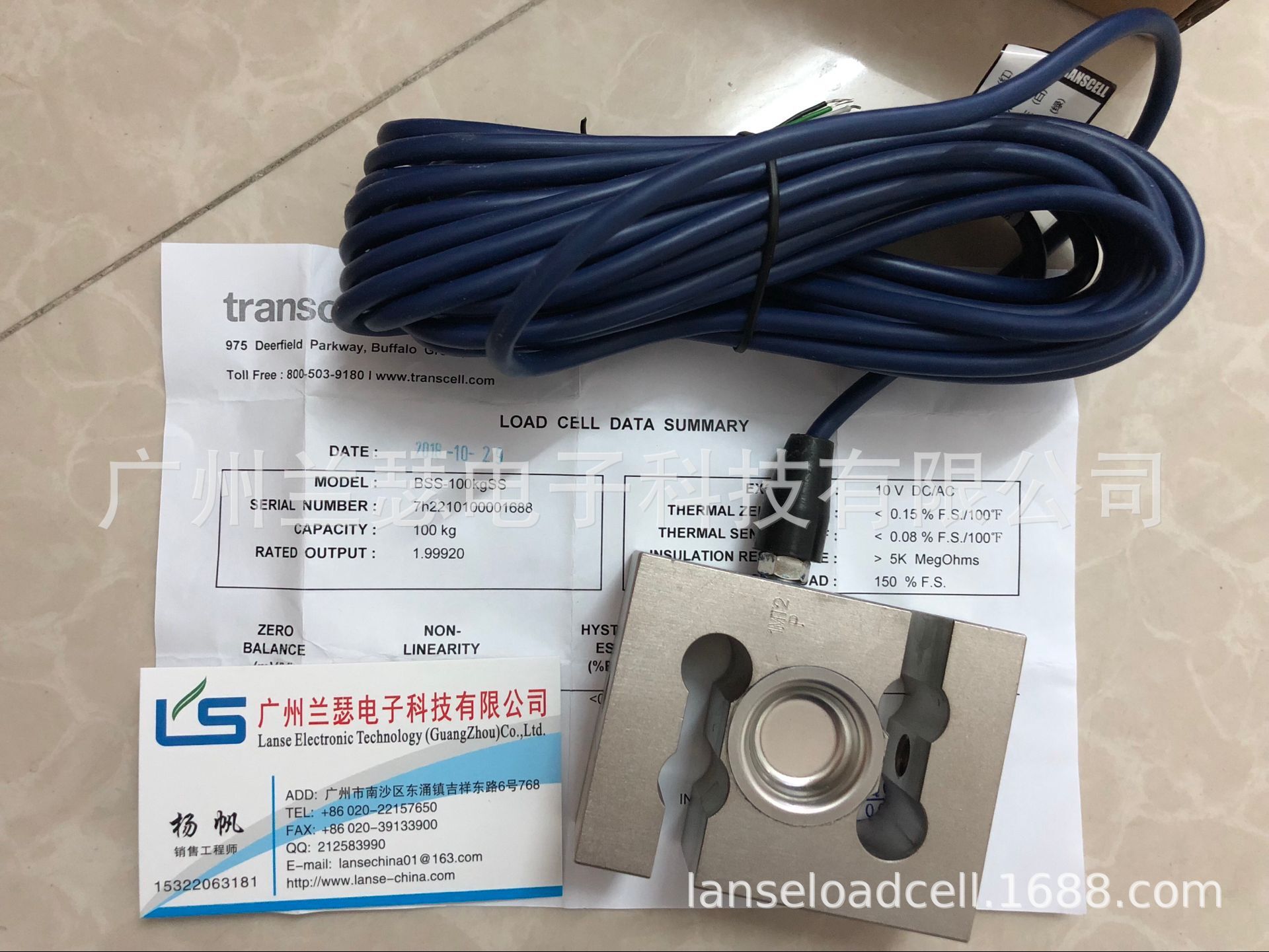 美國transcell BSS-100kg稱重傳感器質(zhì)量保證合約