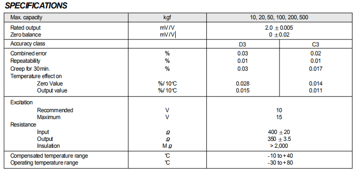 韓國CAS HBS-50L稱重傳感器技術(shù)參數(shù):
