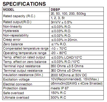 韓國(guó)Bongshin DBBP-50kg稱重傳感器主要特性: