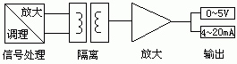 直流信號分為直流電壓和直流電流,直流電流一般是通過電阻取樣,直流電壓一般用電阻降壓處理。由一個隔離電源向前置放大器供電。