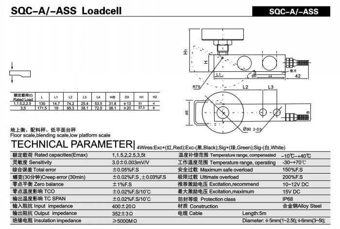 美國(guó)SUNCELLS SQC-2T稱重傳感器參數(shù)尺寸: