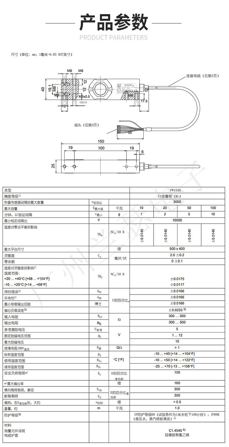 德國(guó)HBM PW15AHC3/100KG稱重傳感器產(chǎn)品參數(shù):