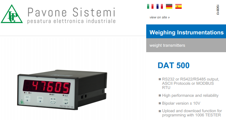 意大利PAVONE DAT500重量變送器產(chǎn)品特點(diǎn):
