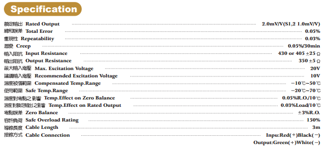臺(tái)灣JIHSENSE SA系列LOADCELL型號(hào):