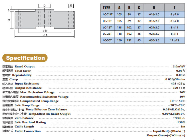 本L型荷重元( L Load cell)系最常用的力量量測荷重元,由於大面積穩(wěn)固的底座以及極低的高度,並配上高敏度剪 力感應(yīng)結(jié)構(gòu)及完全密封保護,使荷重感應(yīng)達到最高之精度與敏感度,因此特別適用於精確重量測、力量測試、地磅及自動控制上,具以下之特點: 臺灣JIHSENSE荷重元L系列(LOADCELL)型號 Type: