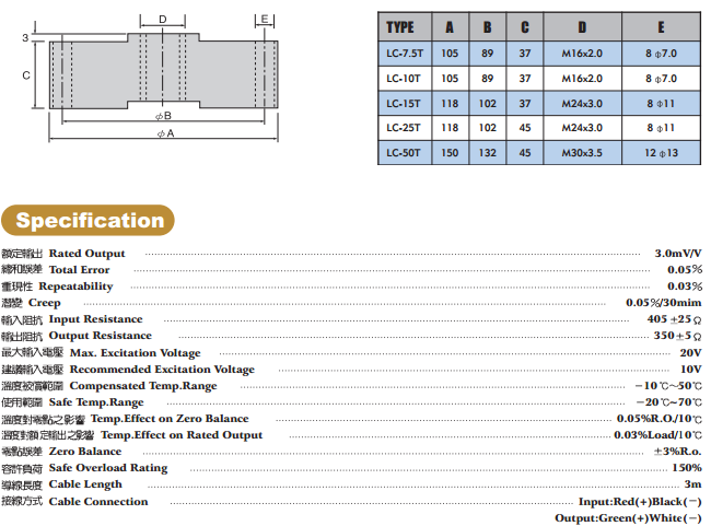 本LC型荷重元( L Load cell)系最常用的地磅荷重元,由於大面積穩(wěn)固的底座以及極低的高度,並配上高敏度剪刀感應(yīng)結(jié)構(gòu)及完全密封保護(hù),使荷重感應(yīng)達(dá)到最高之精度與敏感度,因此特別適用於地磅、精確重量測及力量測試上,具以下之特點(diǎn):