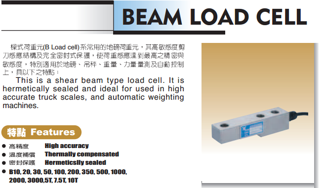 臺(tái)灣JIHSENSE B(LOADCELL)系列型號(hào) Type: