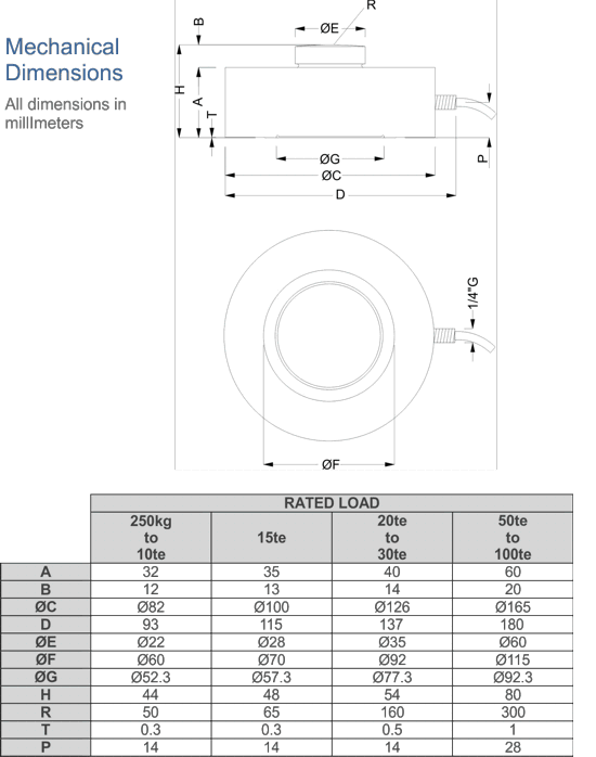 This range of load cells is available with ranges covering 0-250kg to 0-100te.