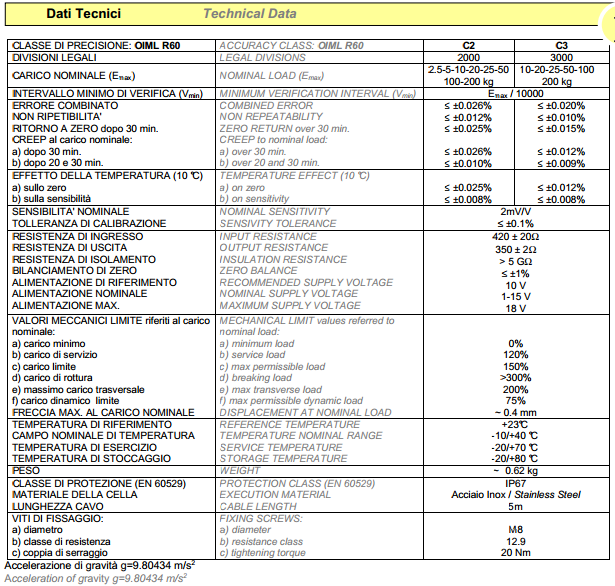 Classi (OIML R60): C2, C3