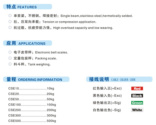 CSE傳感器,志美CHIMEI CSE稱重傳感器規(guī)格: