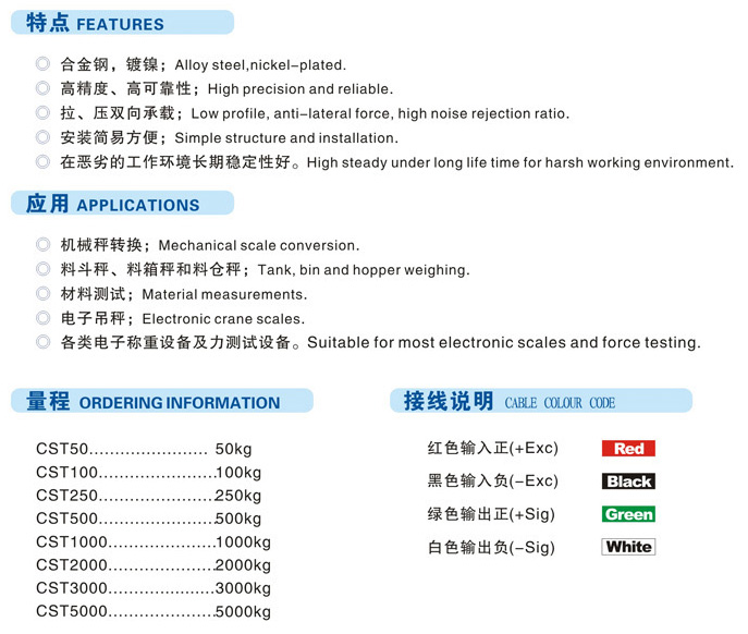 CST傳感器,志美CHIMEI CST稱重傳感器規(guī)格: