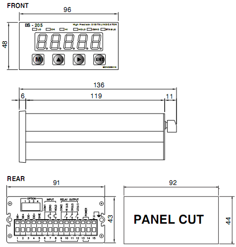韓國Bongshin BS-205稱重顯示儀表安裝尺寸