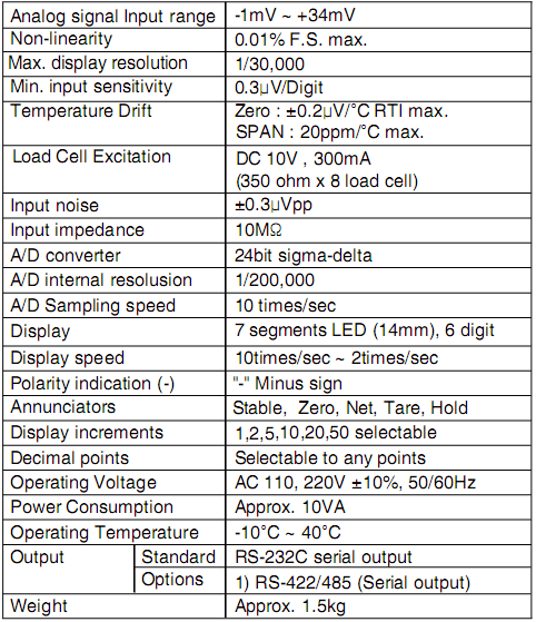 韓國Bongshin BS-5200稱重儀表技術(shù)指標(biāo)