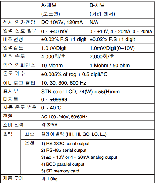 韓國(guó)Bongshin BS-G1000稱重儀表技術(shù)指標(biāo)