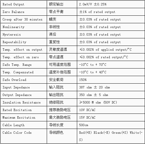 Transcell DBSL-TJ(0.5t-2t)輪輻式稱傳感器技術(shù)參數(shù):