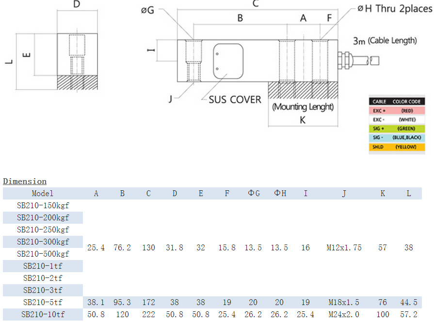 韓國SEWHACNM(世和)SB210稱重傳感器規(guī)格和圖紙