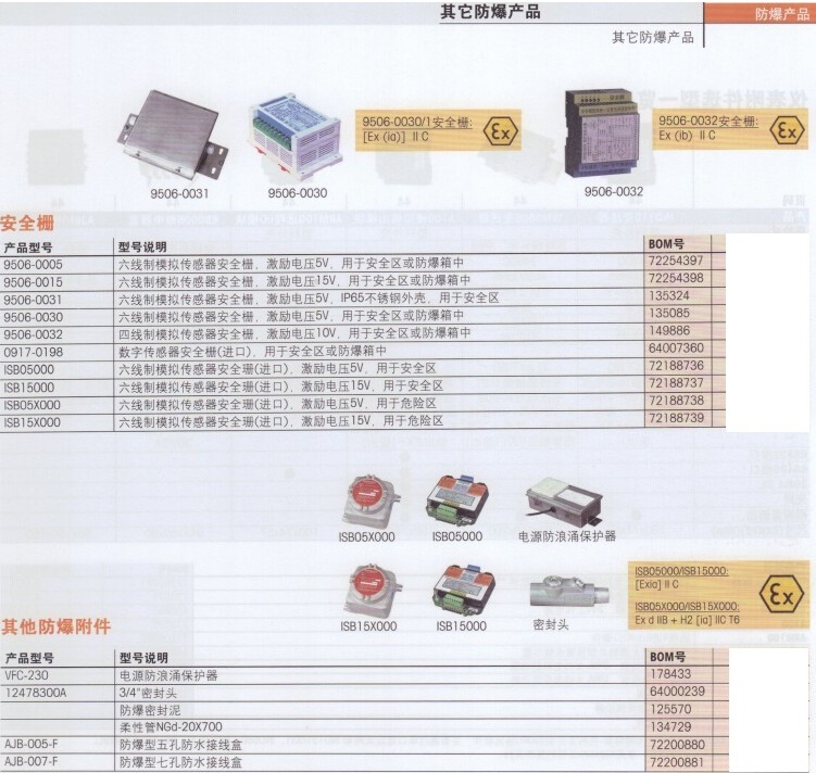 產(chǎn)品編號 防爆標志 適用危險區(qū)域 防爆合格證號