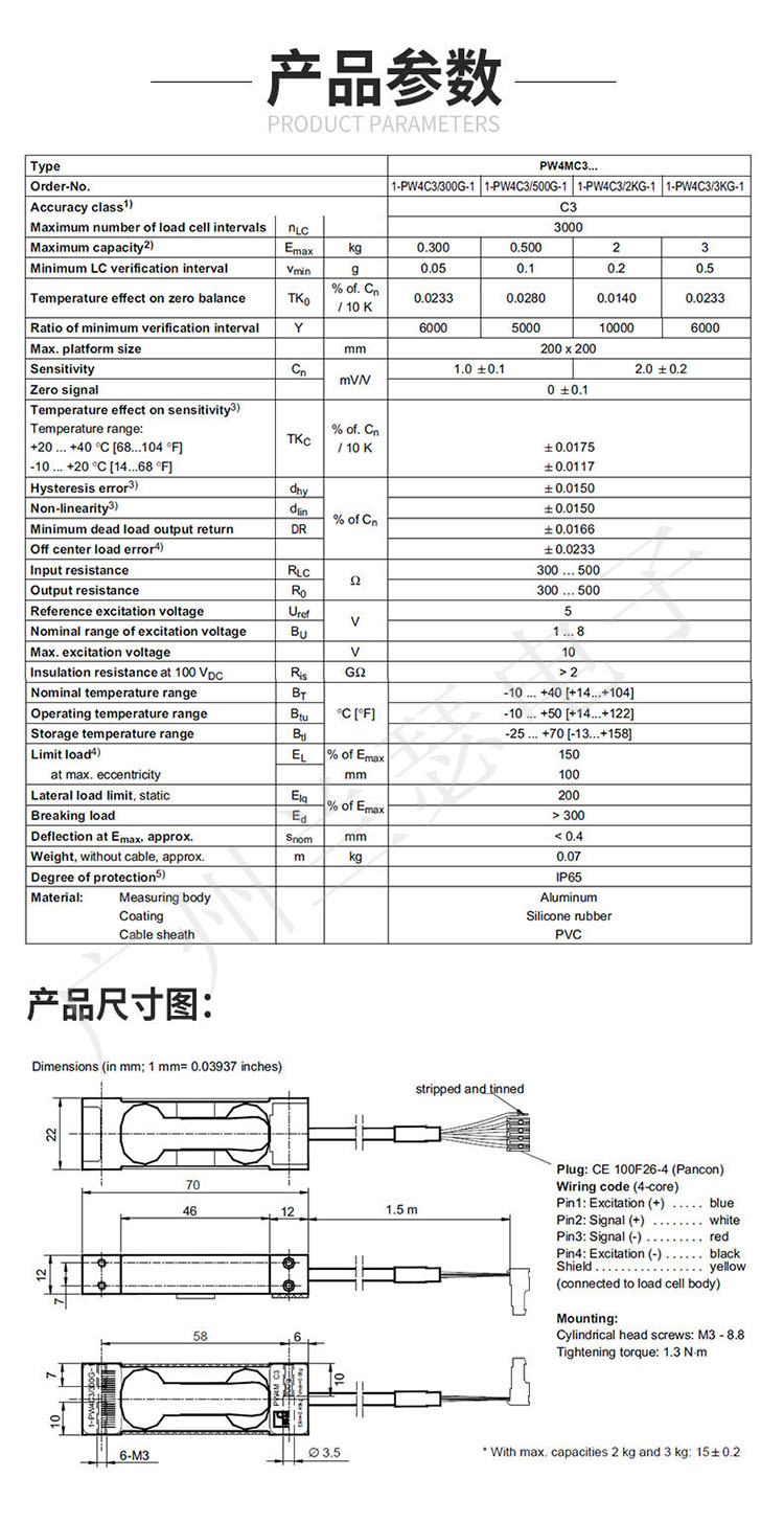1-PW4C3/3KG-1 PW4C3/3KG稱重傳感器