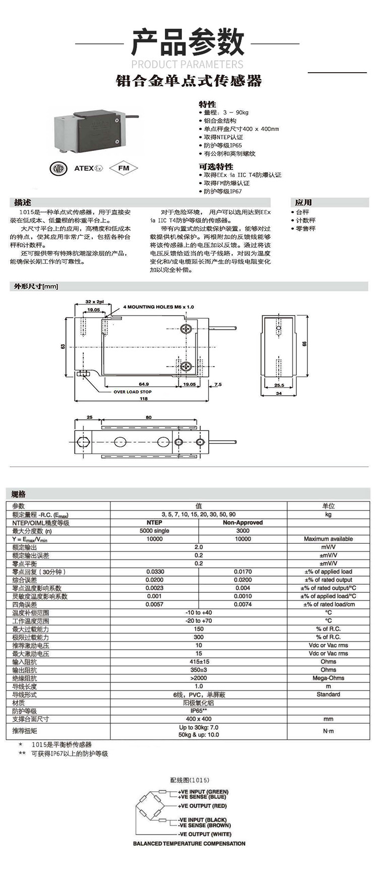 美國Tedea 1015稱重傳感器產(chǎn)品參數(shù):