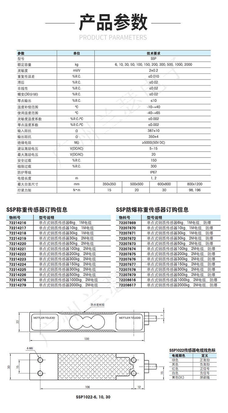 Mettler toledo稱重傳感器SSP1022-10kg所有型號(hào):