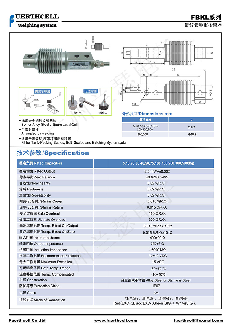 美國FUERTHCELL FBKL-50KG稱重傳感器產(chǎn)品參數(shù):