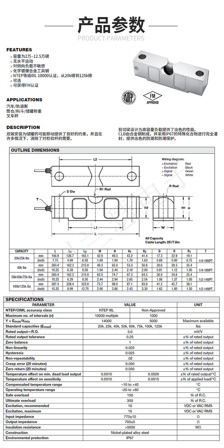 Celtron CLB-25KLB稱(chēng)重傳感器技術(shù)參數(shù)圖: