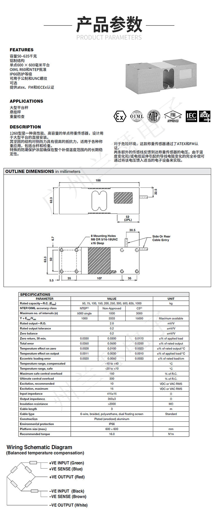 美國Tedea 1260-100kg稱重傳感器產(chǎn)品參數(shù):