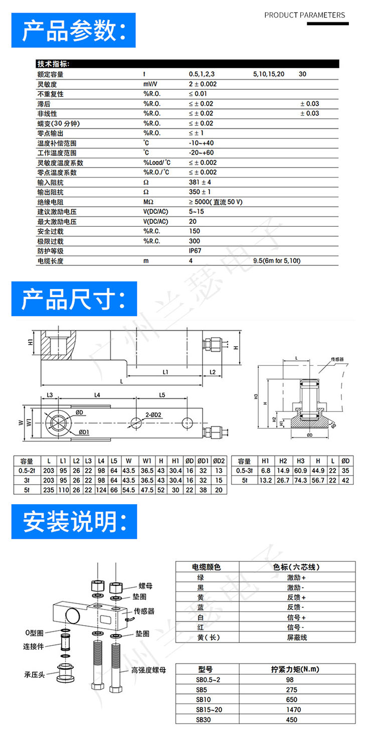 注:SB-0.5是梅特勒-托利多傳感器中容量為500KG(0.5T)。所以容量為0.5t,那么型號(hào)就是SB-0.5。以止類推得到SB系列的所有型號(hào)。