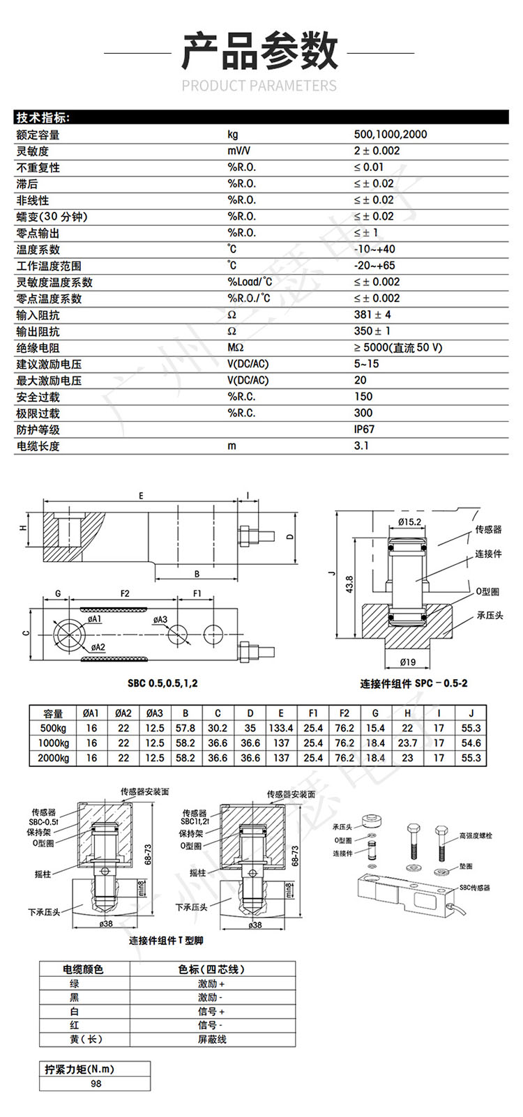 注:SBC-0.5是梅特勒-托利多傳感器中容量為500KG(0.5T)。所以容量為0.5t,那么型號(hào)就是SBC-0.5。以止類(lèi)推得到SBC系列的所有型號(hào)。