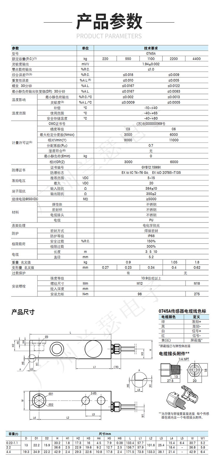 除0745A-2.2,0745A-2.2稱重傳感器其它品牌相關(guān)型號(hào):
