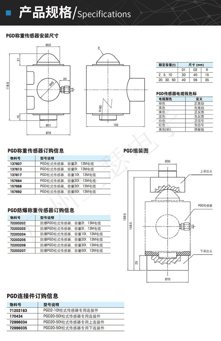 注:PGD-2是梅特勒-托利多傳感器中容量為2t。那么型號就是PGD-2。以止類推得到PGD系列的所有型號。