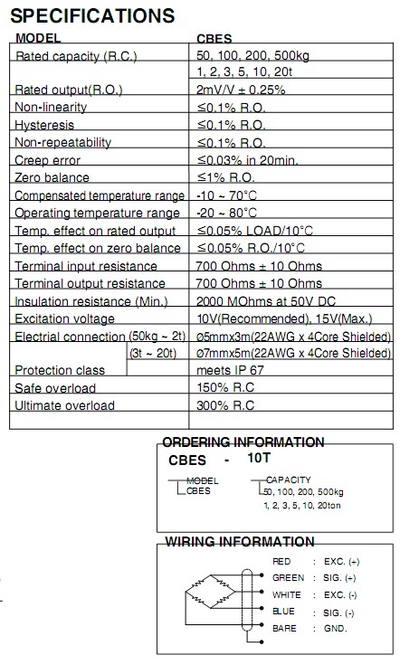 CBES-50kg,CBES-50kg稱重傳感器,Bongshin CBES-50kg傳感器主要特性: