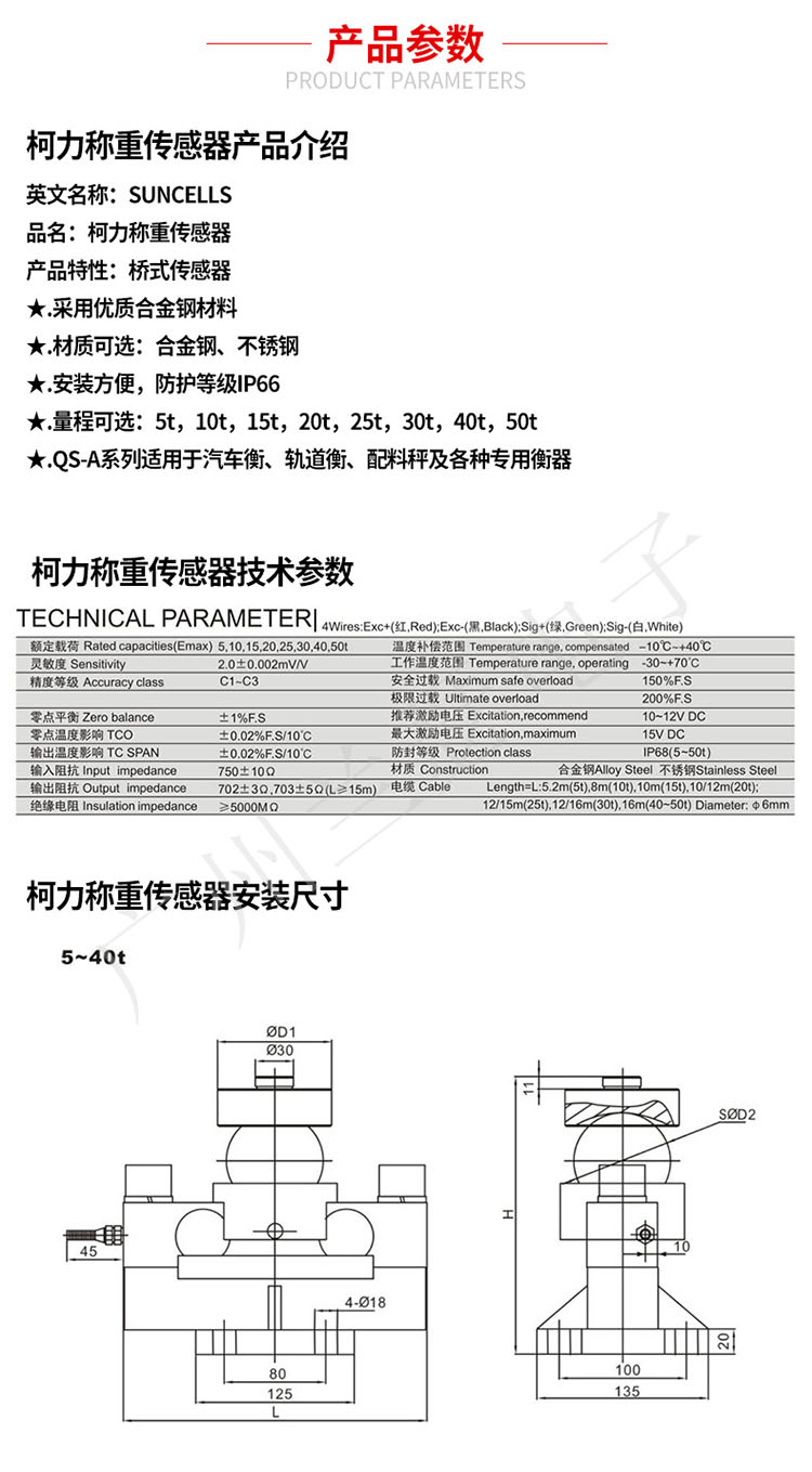 SUNCELLS QS-D-20T稱重傳感器產(chǎn)品簡介: