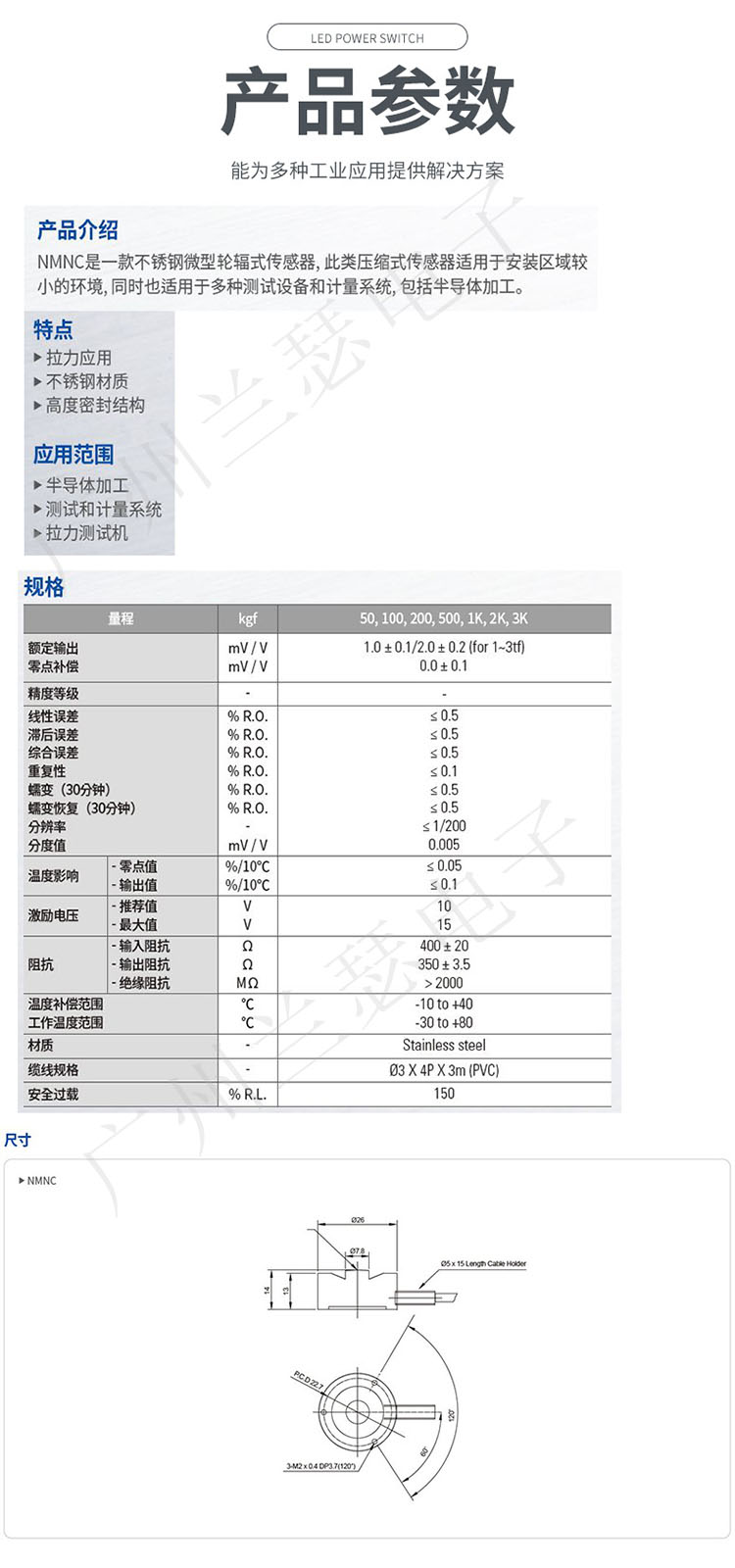 韓國CAS NMNC-50KG傳感器技術(shù)參數(shù):