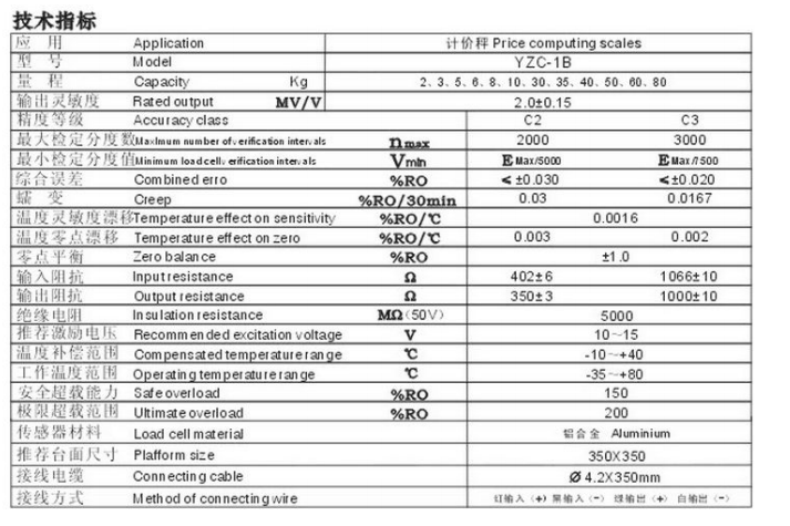 廣測GUANGCE YZC-1B稱重傳感器技術(shù)參數(shù)