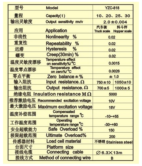 廣測(cè)GUANGCE YZC-818稱重傳感器技術(shù)參數(shù)