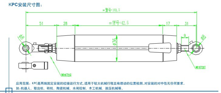 5.機(jī)械行程(mm):有效行程+7mm(每端緩沖3.5mm)