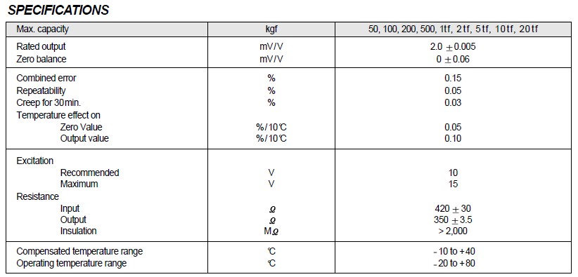 韓國CAS MNC-20T傳感器技術(shù)參數(shù):