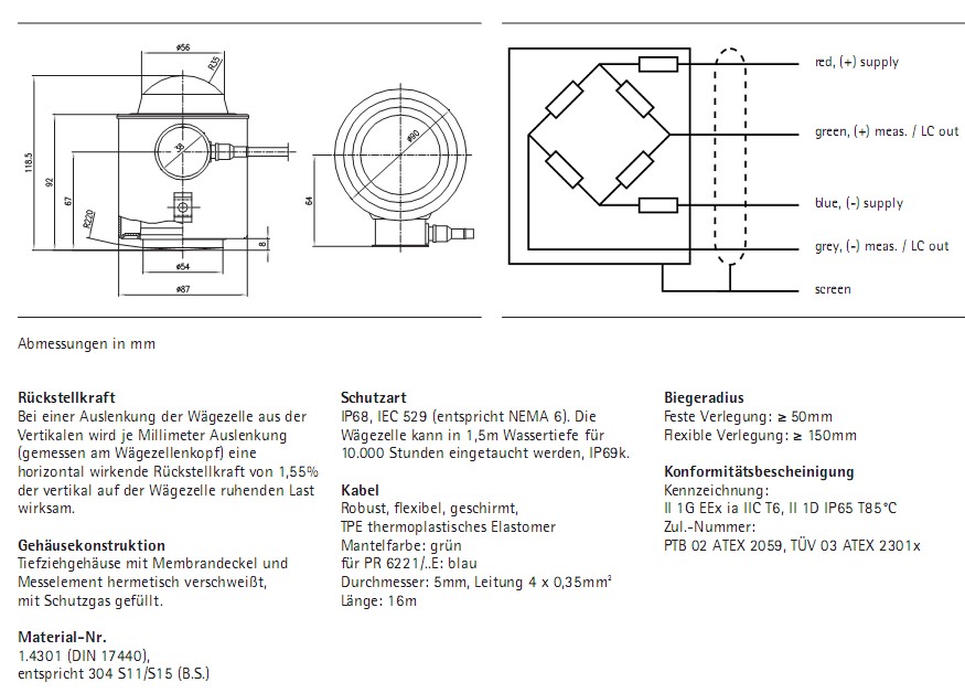 德國Sartorius PR6221/75TC3稱重傳感器特點應(yīng)用: